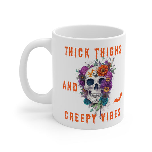 Ceramic Mug 11oz - Halloween - Skull and flowers
