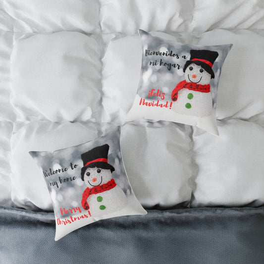 Cojín de poliéster hilado - Feliz Navidad - Muñeco de nieve