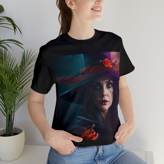 Camiseta de manga corta Unisex Jersey - Mujer bruja de Halloween AI - 01