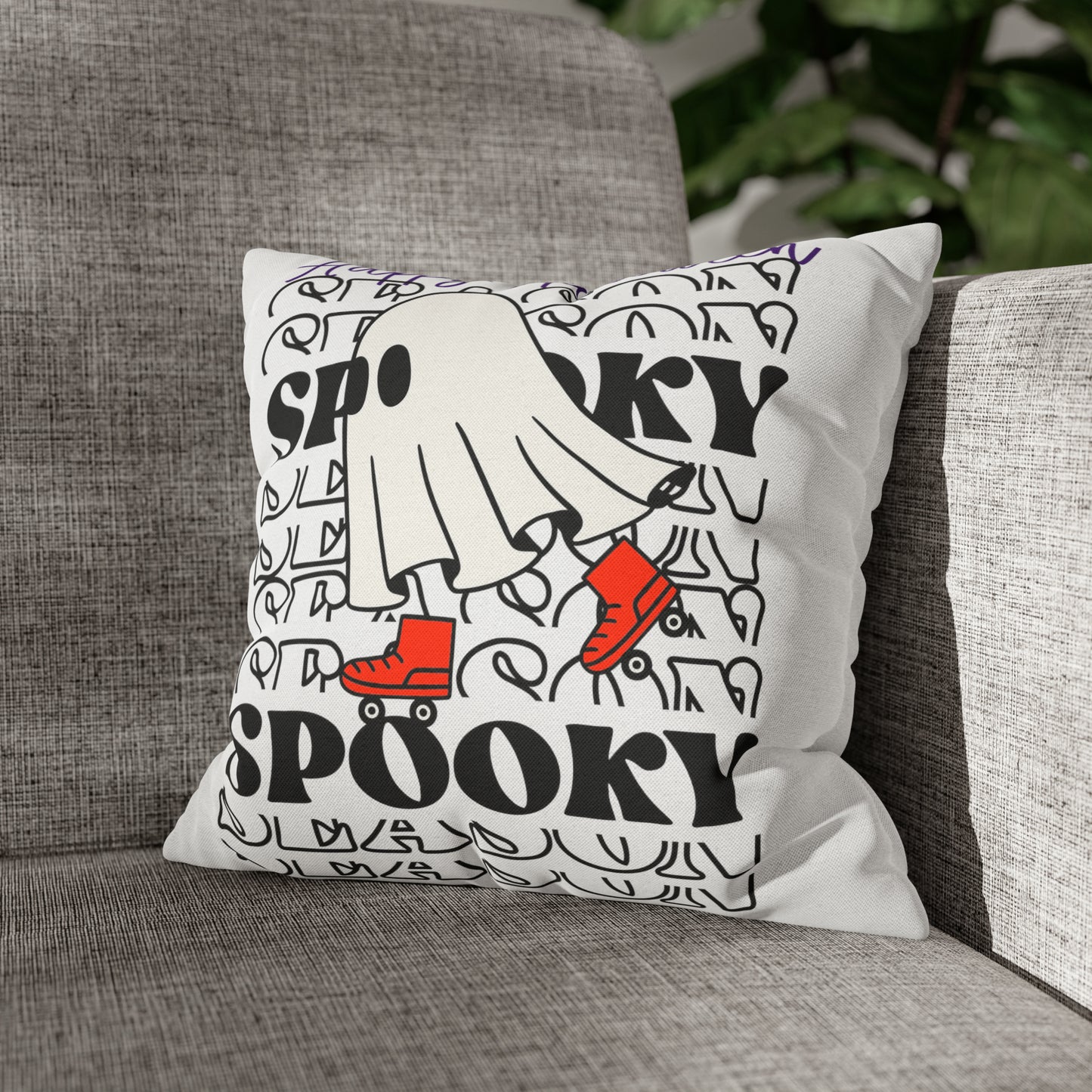 Funda de almohada cuadrada de poliéster hilado - Halloween - Pequeño fantasma - 10/11