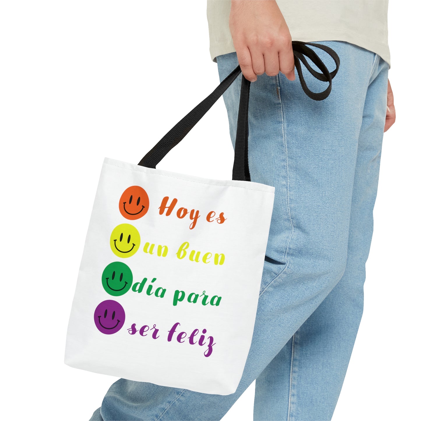 Nuestro Tote Bag está fabricado en tela de poliéster de alta calidad, con un laminado no tejido en el interior que le otorga resistencia y durabilidad. Tiene esquinas encajonadas que le dan forma y asas de algodón negro que le dan comodidad. Está disponible en tres tamaños diferentes, para que elijas el que mejor se adapta a tus necesidades. Además, cuenta con un estampado all over por ambas caras, con colores vibrantes y estampados estampados en alta definición que harán de tu Tote Bag el centro de todas las miradas.