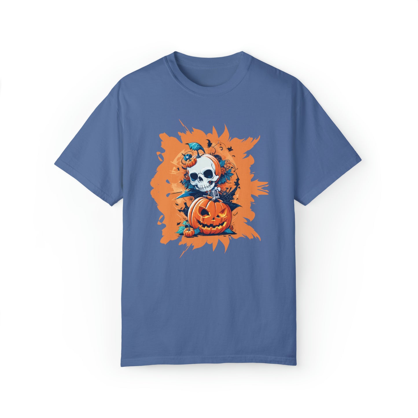 Camiseta unisex teñida en prenda - Halloween - Calavera y calabazas
